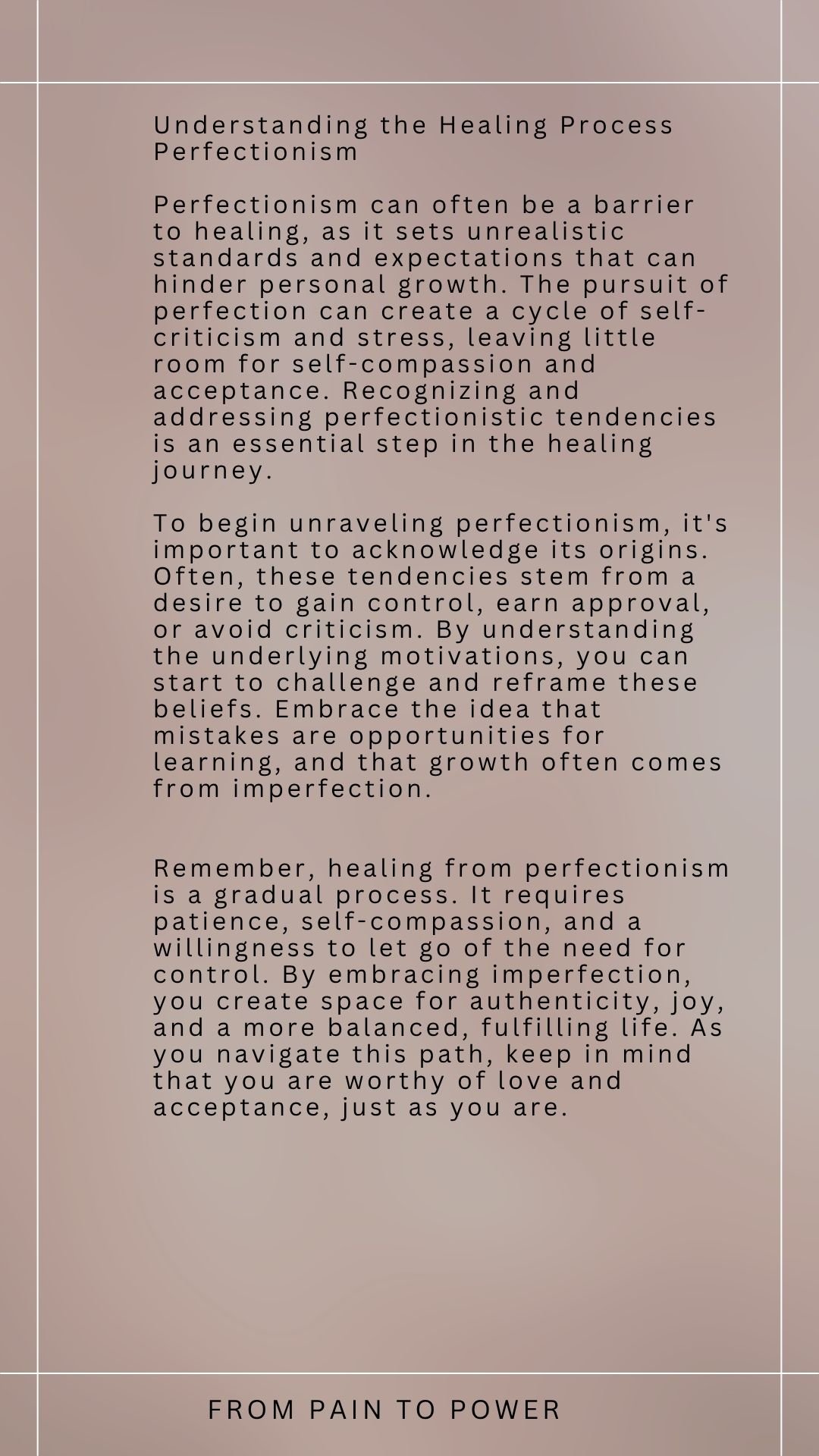 Perfectionism Healing and Reflection 13 Aug Written By Becca Jamieson Understanding the Healing Process Becca Jamieson