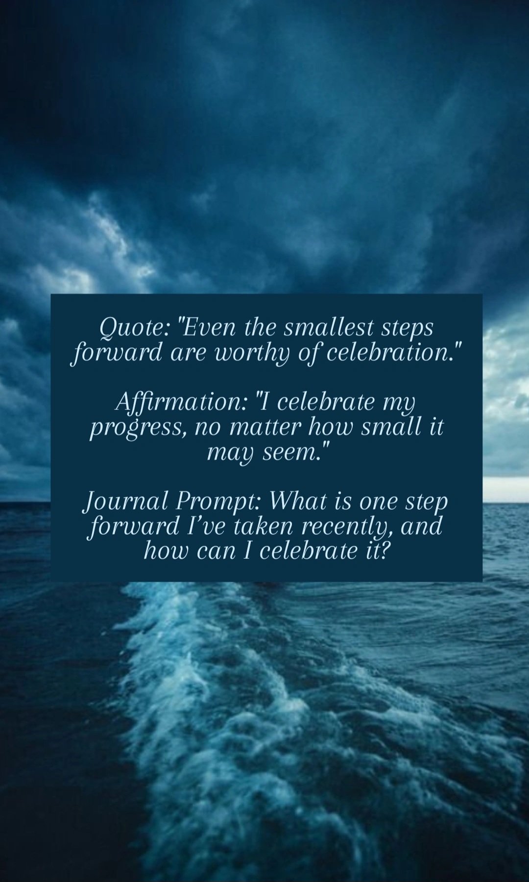 Take a moment to recognize your progress, no matter how subtle. Reflect on the small steps you’ve taken, the choices you’ve made, the moments you’ve persisted. Give yourself credit. Smile at your own courage. Because even the smallest steps forward are worthy of celebration and they are laying the foundation for the person you are becoming.