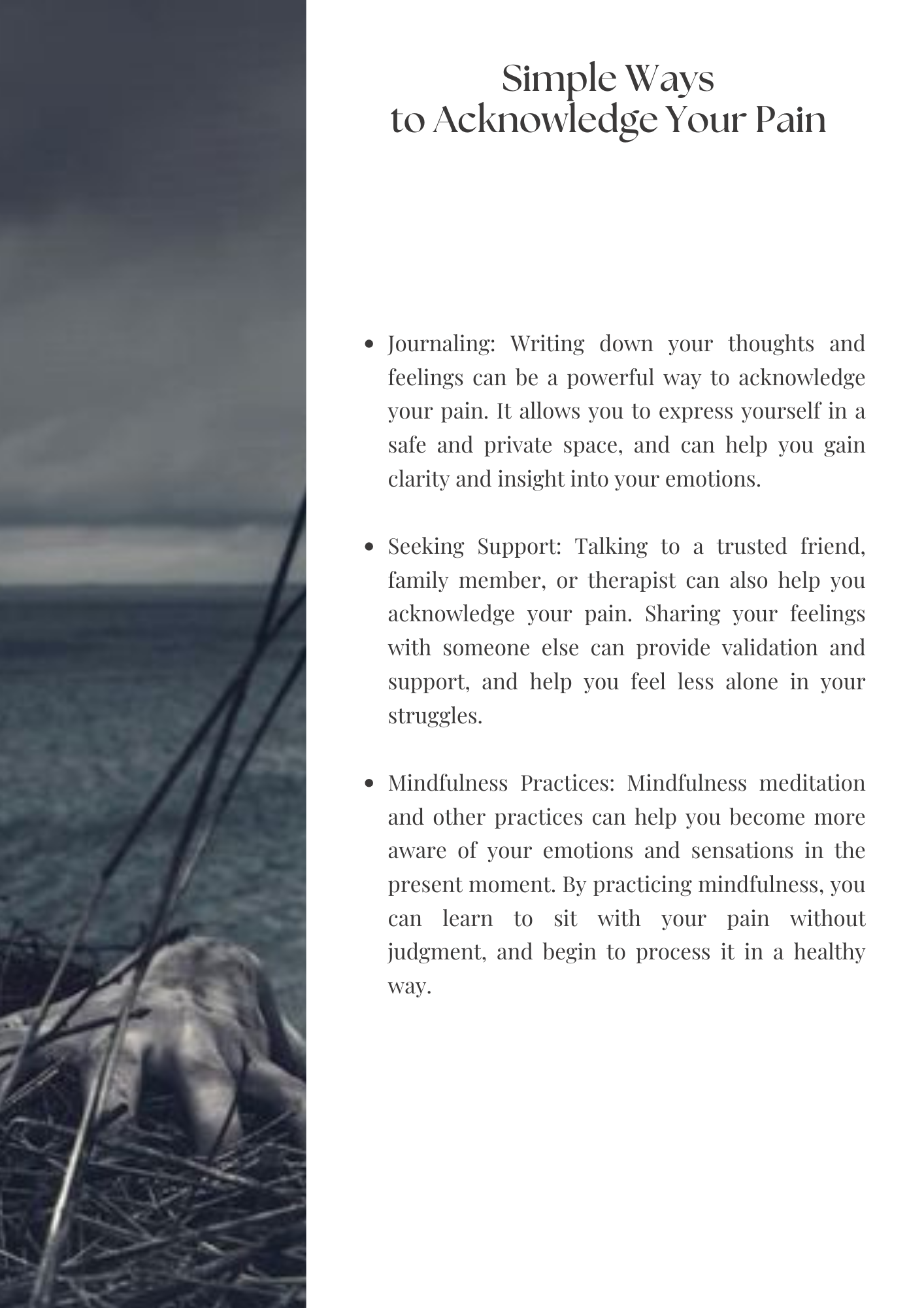 Things you can do to help Acknowledge Your Pain Healing and Reflection 4 Feb Written By Becca Jamieson Simple ways to acknowledge Your Pain Becca Jamieson
