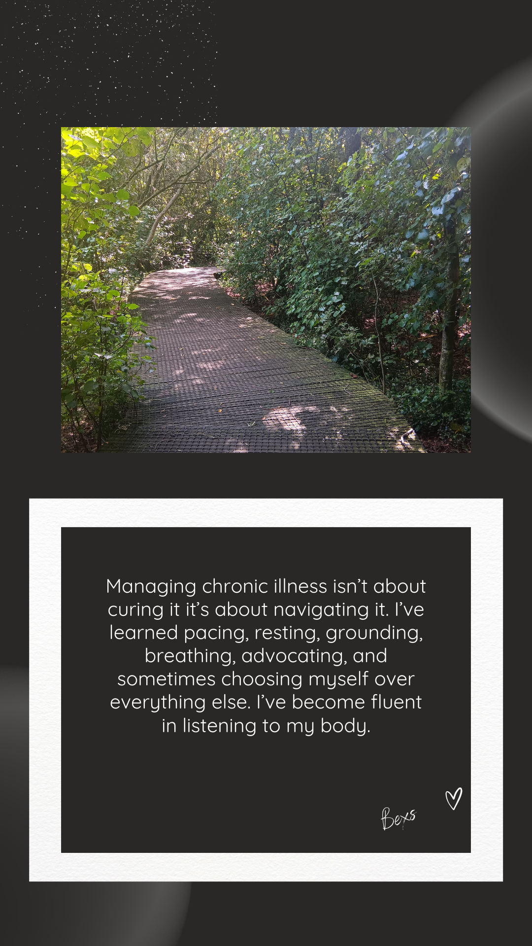 These snippets are small windows into how i manage life with chronic illness, they are not cures this is awareness they are the practices that help me cope, heal and keep going